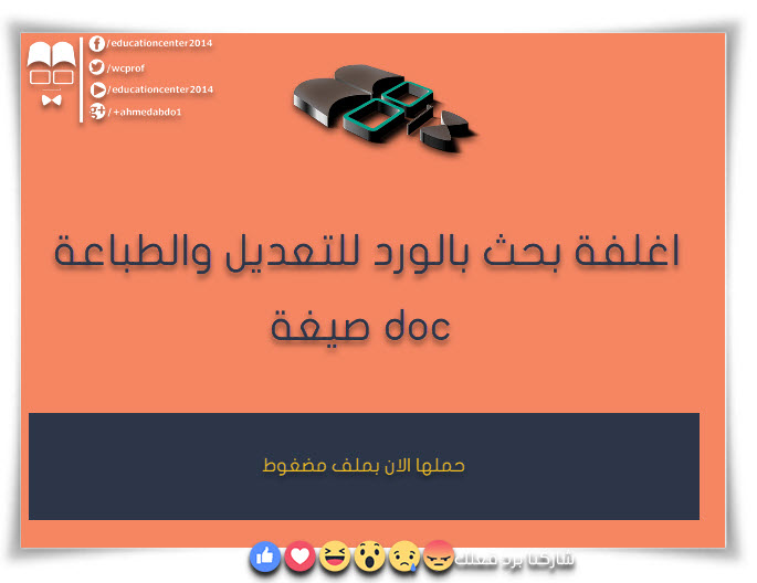 اغلفة بحث بالورد للتعديل والطباعة صيغة Doc