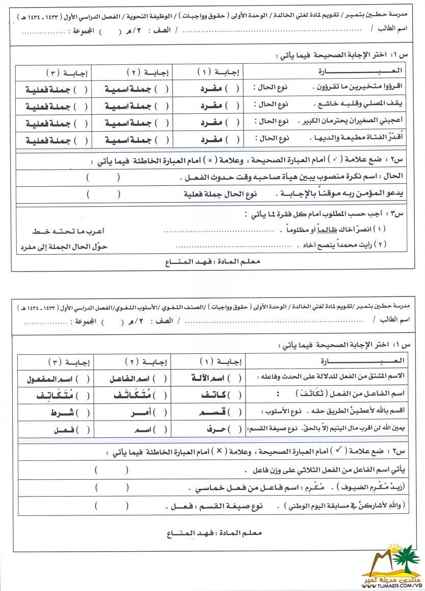 نماذج اختبار لغتي ثالث متوسط الوحدة الثالثة امن الوطن علمني