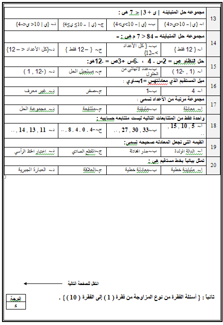 اسئلة اختبار الرياضيات ثالث متوسط ف1 الفصل الاول نهائي نموذج الاجابه 1441 المصدر