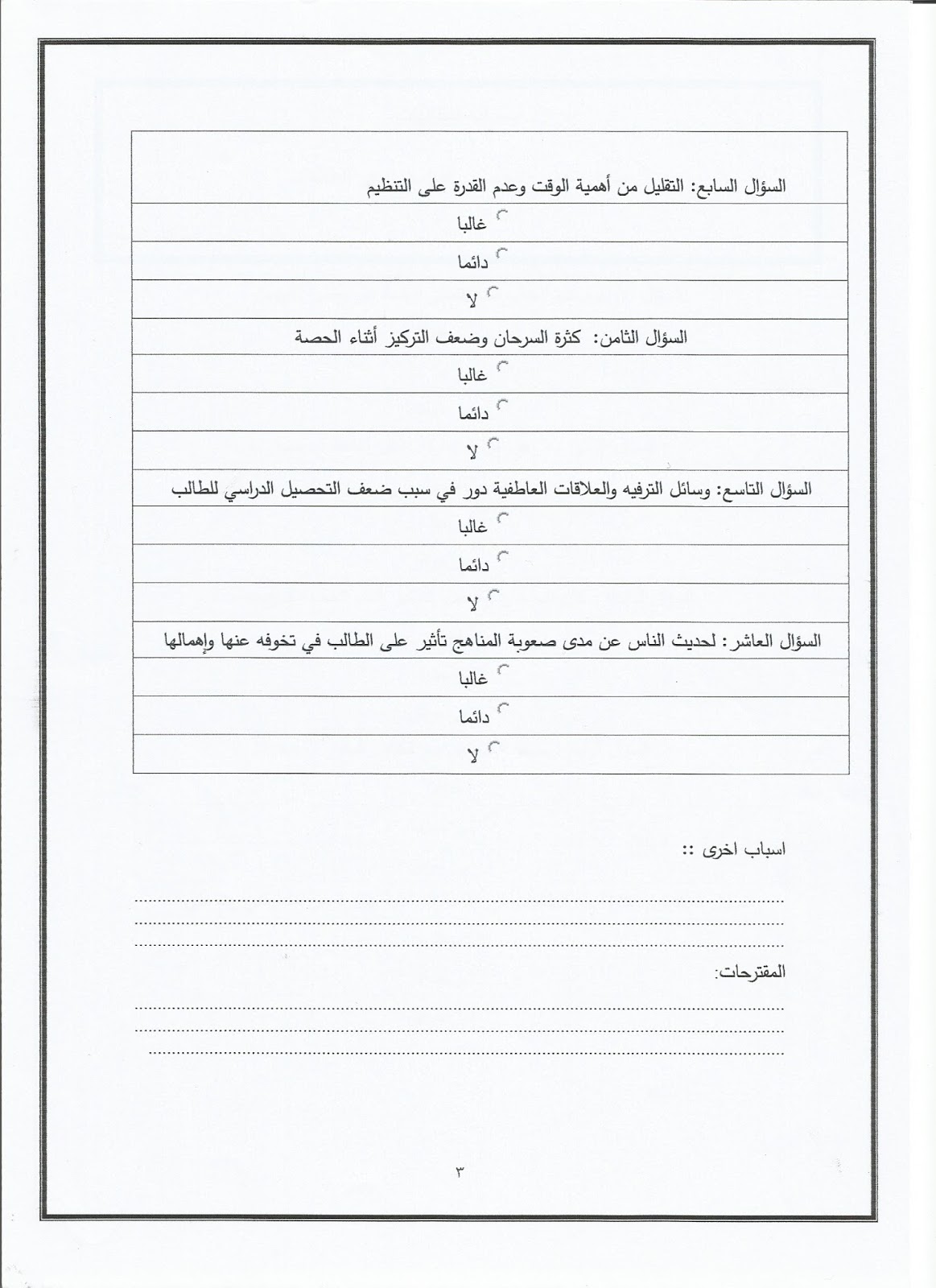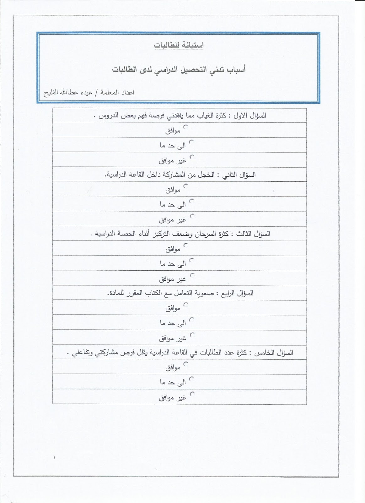 عيده الفليح استبانات البحث العلمي لمشكلة تدني التحصيل الدراسي