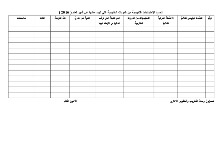 الاحتياج التدريبي نموذج استمارة تحديد الاحتياجات التدريبية للموظفين