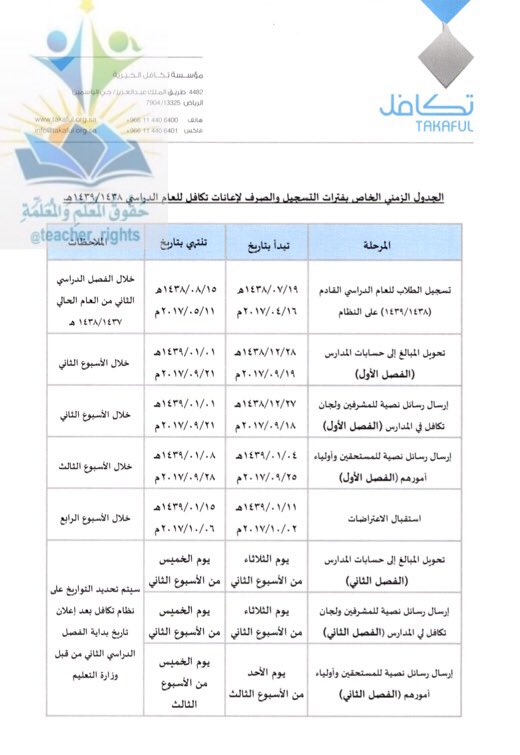 حقوق المعلم والمعلمة وواجباتهما Pa Twitter 1438 7 19هـ يبدأ تسجيل الطلاب والطالبات في تكافل الخيرية حقوق المعلم والمعلمة رتويت