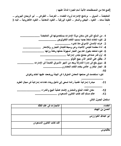 ورقة عمل وحدة الأسواق وعلم الفلك للصف الخامس لمادة الدراسات الاجتماعية الفصل الثالث
