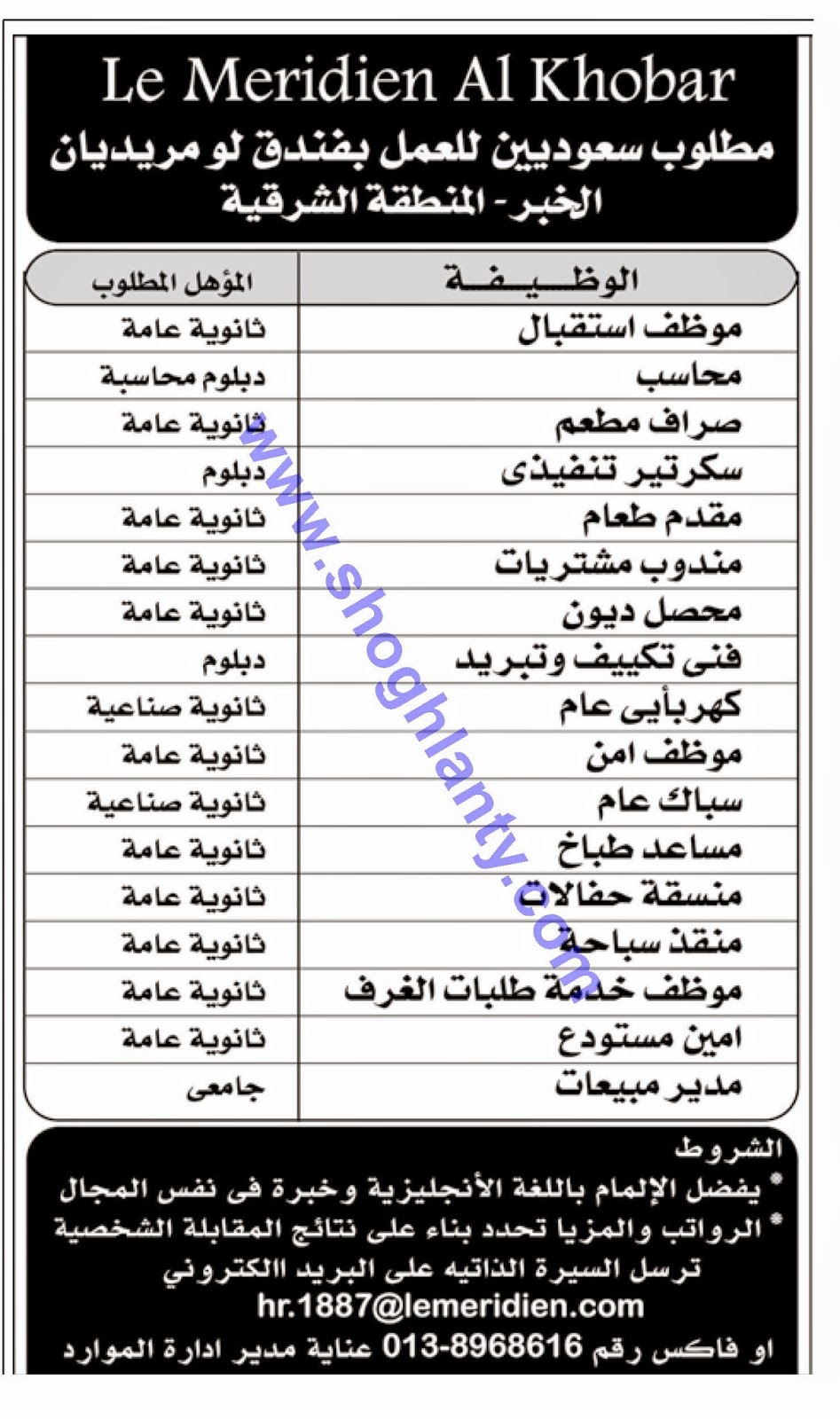 وظائف فندق لو ميريديان الخبر للسعوديين 15000 وظيفة