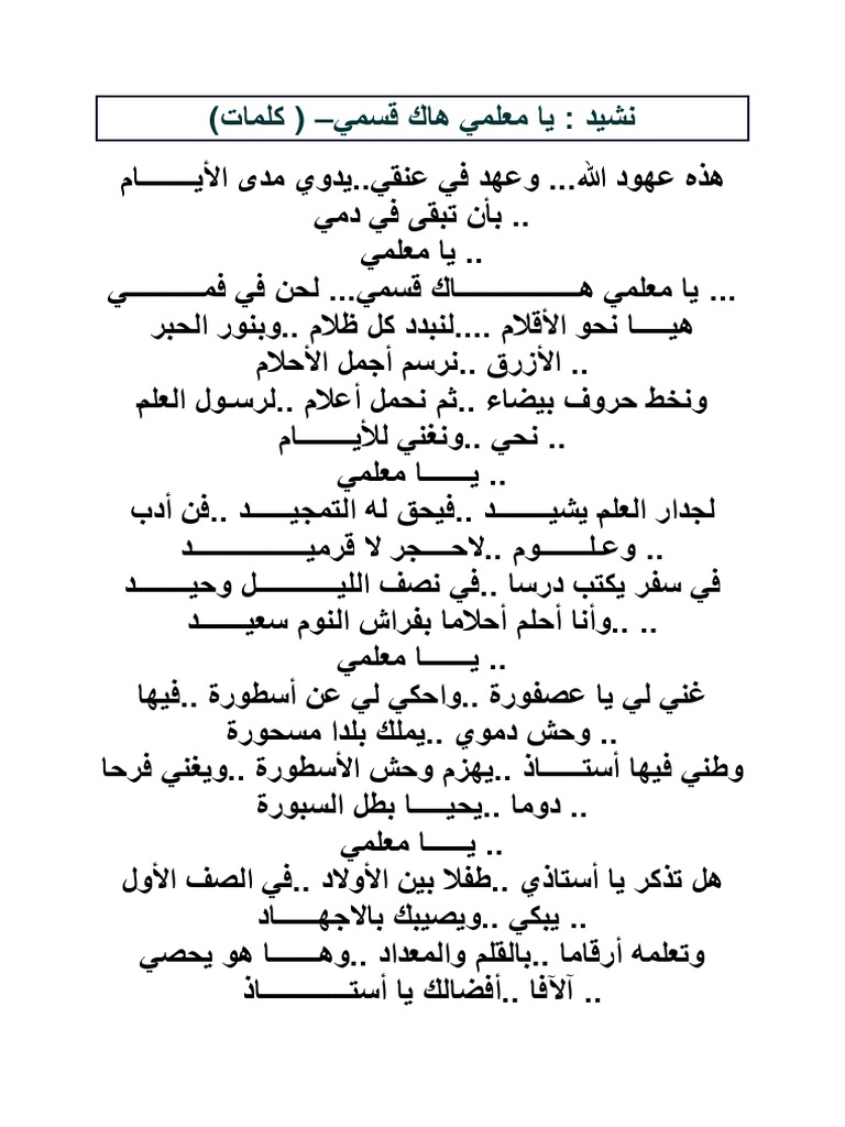 أنشودة يامعلمي هاك قاســـــمي إستماع مقروئة تحميل Mp3 الموقع التعليمي Ademweb Com